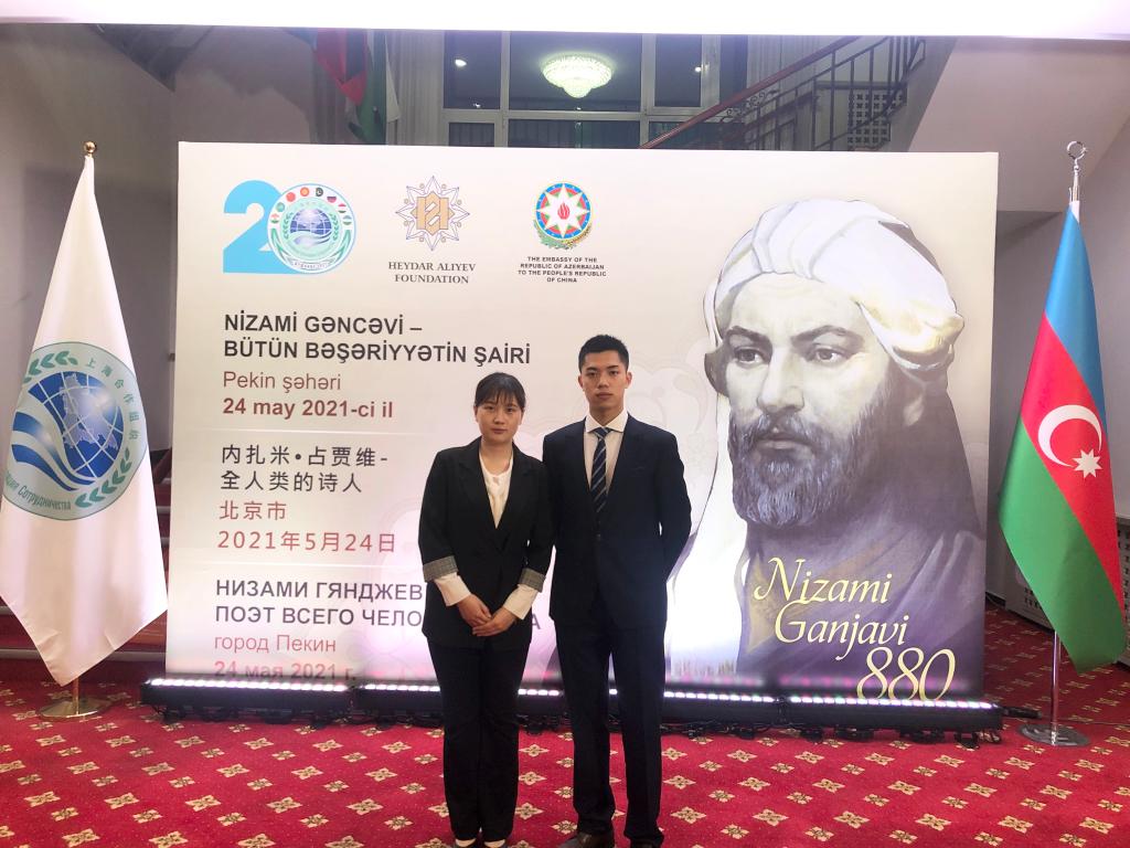 2021年5月24日晚,经阿塞拜疆驻华大使馆的邀请,新葡8883官网AMG官网阿塞拜疆语专业本科生王思源和唐雨萱参与了“内扎米·占贾维—全人类的诗人”主题活动。该活动在北京上海合作组织总部举办,旨在庆祝伟大阿塞拜疆诗人,思想家内扎米·占贾维诞辰880周年。