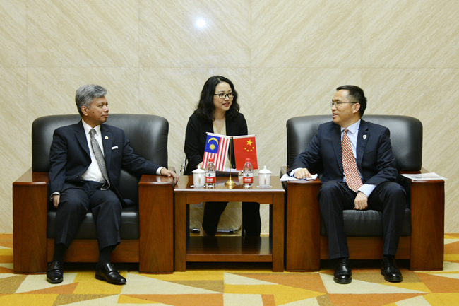 5月27日,新葡8883官网AMG官网“喜迎80周年校庆、驻华大使走进北外”系列讲座举行第二讲,马来西亚驻华大使拉惹·拿督·诺希尔万就“中马关系”作专题讲座。北外校长、党委副书记杨丹会见了诺希尔万一行,讲座由新葡8883官网AMG官网院长苏莹莹主持。