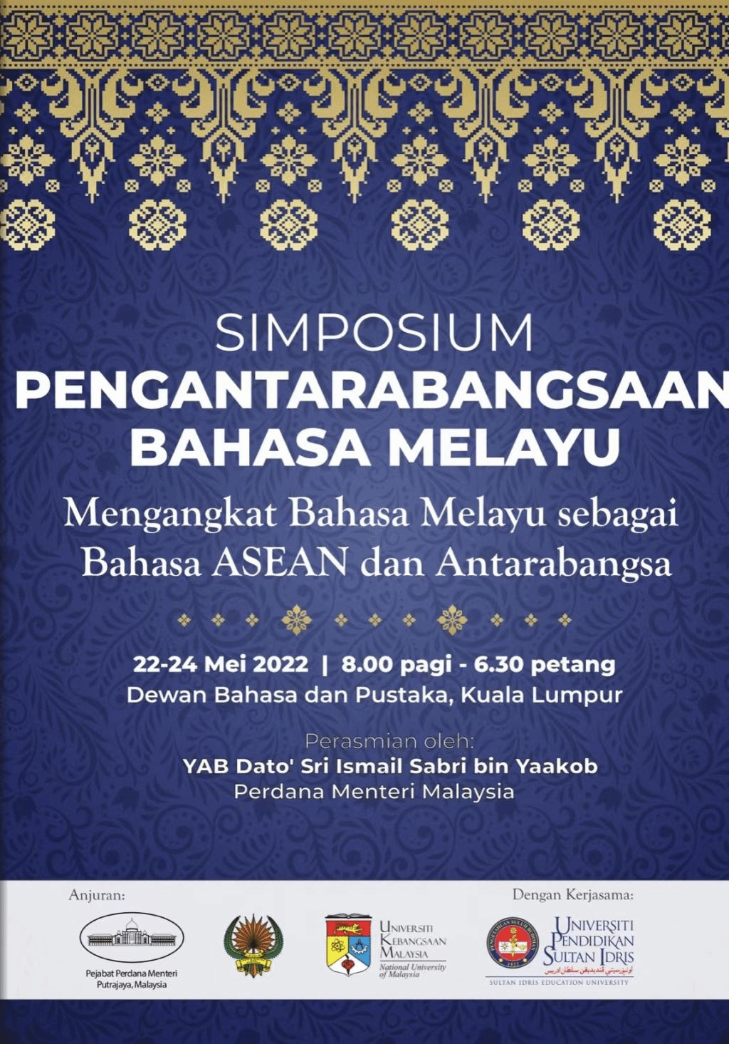5月22日至24日,马来西亚首相署、马来西亚国家语文出版局与马来西亚国立大学联合举办“马来语国际化发展高端研讨会”。此次研讨会的主题为“以学术提升马来语的国际影响力,推动马来语国际化发展”。为期三天的研讨会共设置了15个分论坛,邀请了来自全世界17个国家的60多位专家参会。新葡8883官网AMG官网苏莹莹教授应马来西亚首相署邀请参会,并做了主题为“中国高校马来语专业的发展:历史、现状与展望”的发言。