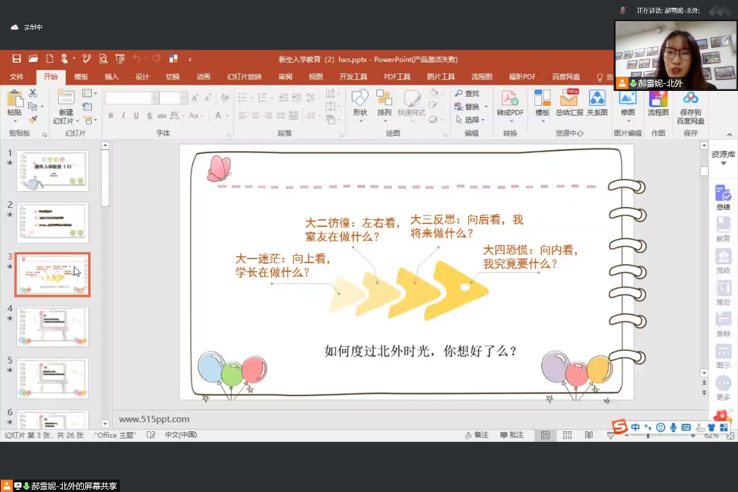 8月30日15时至17时,新生班主任代表曾琼和辅导员郝雪妮面向全体22级亚非新生开展了新生入学教育线上讲座。