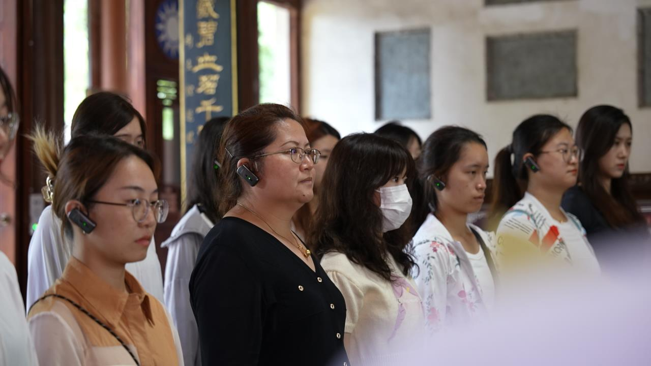 实践团之后来到滇西抗战纪念馆与国殇墓园。滇西抗战纪念馆内丰富翔实的藏品,将中国远征军浴血奋战抗击日寇以及云南人民用血肉修筑滇缅公路、打通中国抗日国际大通道的历史栩栩如生地展示在我们面前。三战龙陵、十战松山、血战腾冲……在一场场苦战硬战中,万千先烈用生命与鲜血,谱写了一部部可歌可泣的壮烈驱寇史诗。令人印象尤其深刻的是戴安澜师长在东瓜保卫战中振聋发聩的誓词:“此次远征系唐朝以来扬国威之盛举,虽战至一兵一卒,也必死守东瓜!”人们永远不会忘记那些在战争中为正义,为和平,为保卫国土和民族尊严而牺牲宝贵生命的人们。滇西抗战是中国、乃至世界人民永远留存的记忆,是中国人民和盟国参战人员共同的历史丰碑。是海峡两岸和世界华人、华侨同一血脉鲜红的见证。缅怀英烈,珍爱和平,牢记历史,发奋图强。在国殇墓园的忠烈祠,赵瑾老师带领全体实践团师生,敬献花圈,随后全体默哀,向保家卫国牺牲的英烈们表达哀思与敬意。