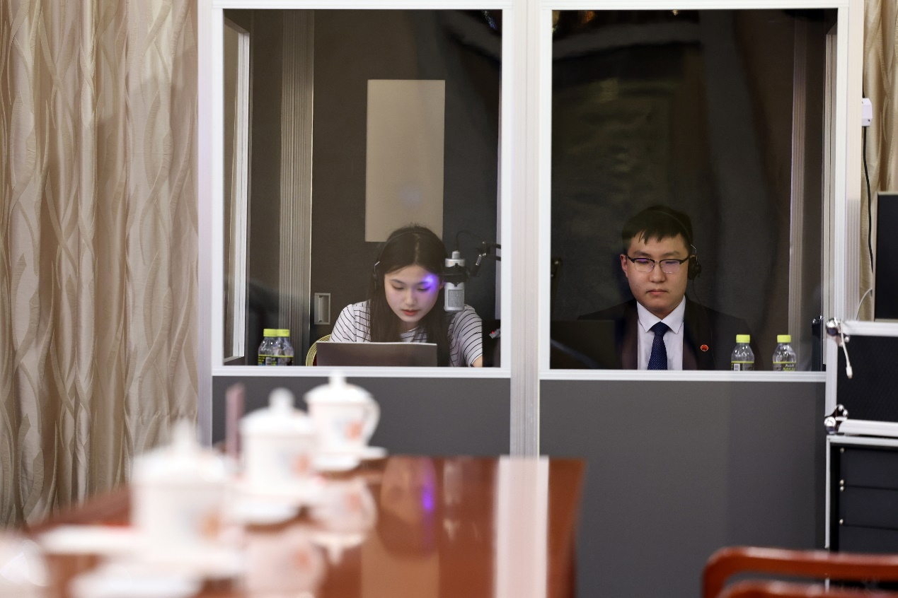 2023年7月5日,全国人大宪法和法律委员会在全国人大会议中心与蒙古国宪法法院举行立法交流活动。北外新葡8883官网AMG官网2019级蒙古语专业学生王羽婷(下图左一)全程参与此次活动的同声传译工作,并收获好评。