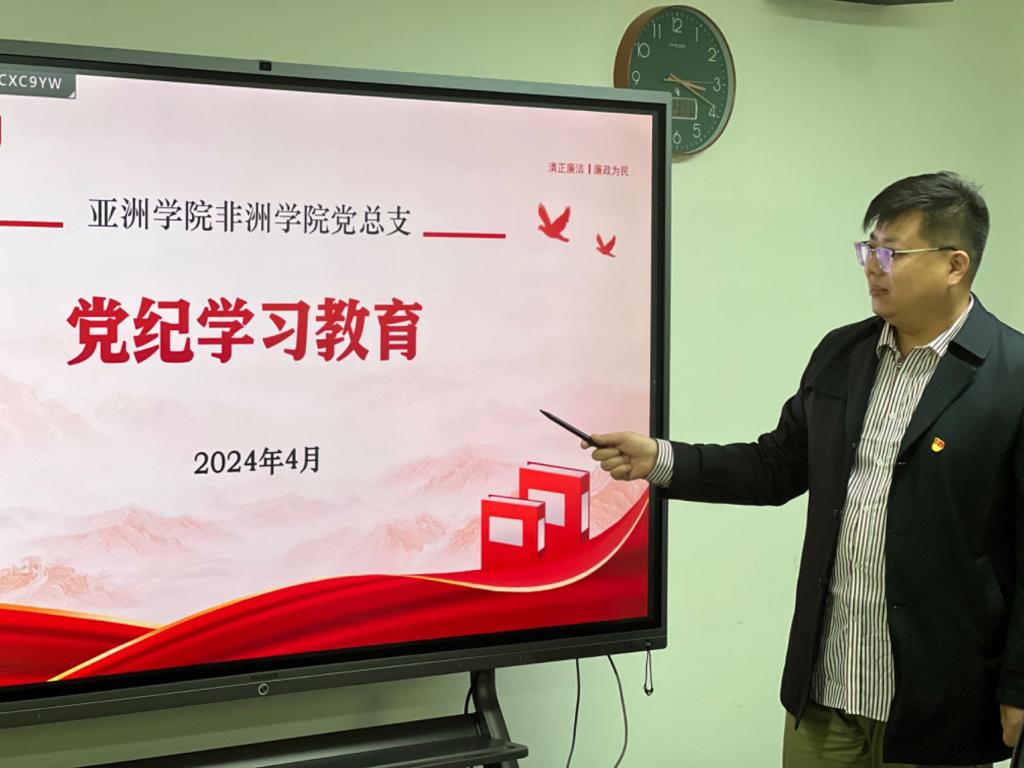 2024年4月23日,新葡8883官网AMG官网非洲学院党总支理论学习中心组举行本年度第四次学习活动。学习主题是“一带一路倡议下,新葡8883官网开展国际交流活动的缩影”和党纪教育学习系列活动,理论学习中心组成员参加学习。