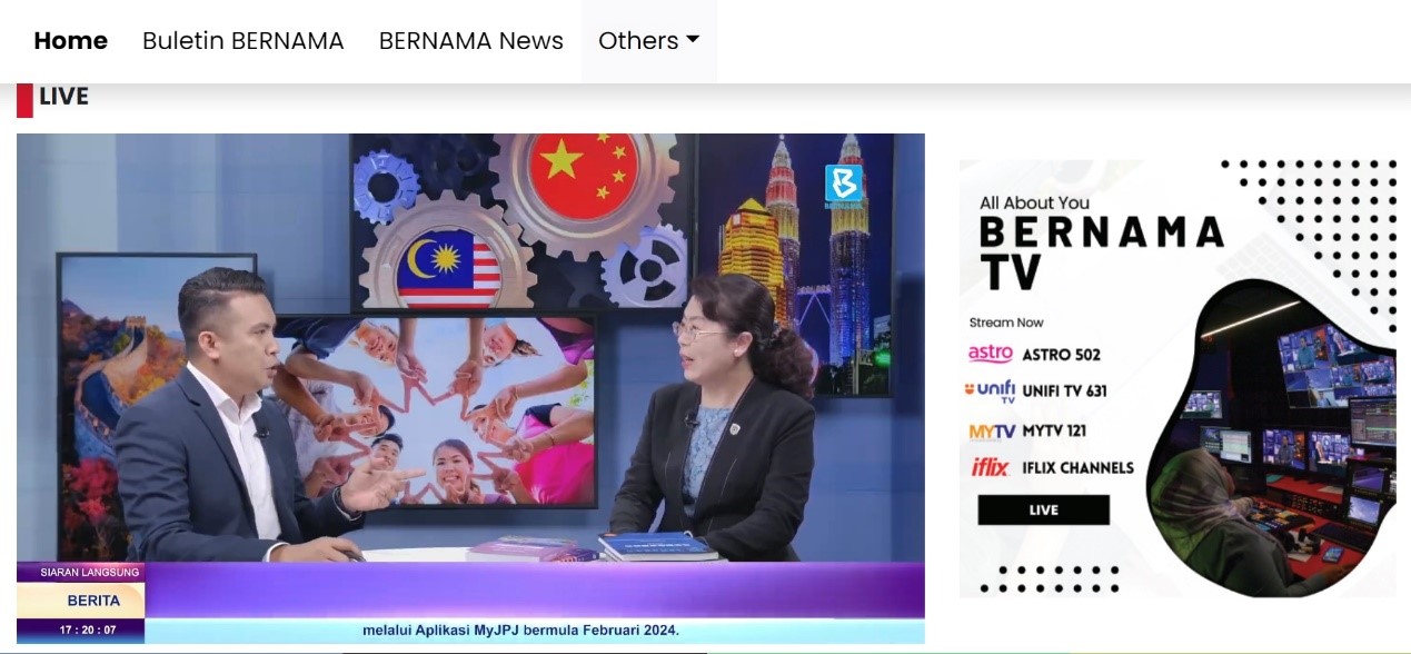 该访谈节目于5月31日下午在马来西亚国家新闻社电视台播出,6月3日上线中国中央广播电视总台亚非中心国际在线马来语频道播出。网址链接分别如下: