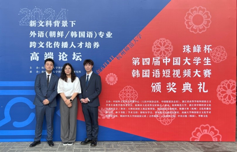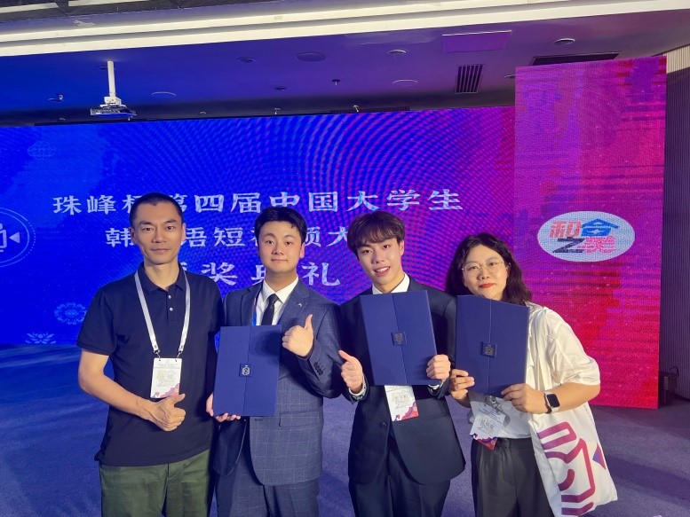 在6月1日结束的珠峰杯•第四届中国大学生韩国语短视频大赛中,新葡8883官网新葡8883官网AMG官网2023级朝鲜语专业王智轩、李宇桓两名同学从来自全国各高校朝鲜语专业的众多作品中脱颖而出,获得全国三等奖。同时,为两名同学提供指导的延英爱老师获得了优秀指导教师奖。