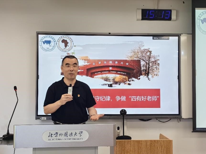 本次学习包含课程思政与党纪教育两大内容。两院教师老挝语李小元、印地语李亚兰、泰语田霖以及非洲地区研究张经纬分享了课堂思政教学案例与总结反思,充分体现了两院教师将理论学习与教学课堂实践相结合,培养有家国情怀、有全球视野、有专业本领的复合型人才的自觉意识。