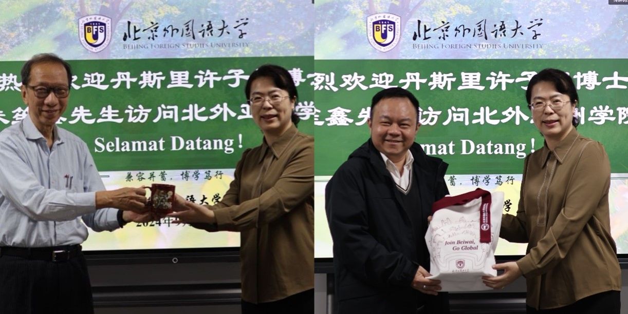 许子根博士是北外马来语专业的好朋友、老朋友,他对马来语专业的人才培养模式表示肯定,并表示马来西亚与中国有着长远而深厚的友谊,希望马来语专业学生充分发挥专业优势,为两国关系发展添砖加瓦。随后,许子根博士为师生做了题为“马中关系50年:以槟城为例”的专题讲座。他立足槟城,从多方面、多维度讲述了他本人担任槟城首席部长期间所亲历的中马关系中的重要历史时刻,也分享了多位中国领导人访马时留下的佳话。朱笙鑫先生在会谈中对北外马来语专业的发展成就做出肯定,表示在中马青年一代的努力下两国友好关系未来可期。