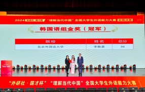 12月7日,2024年“外研社·国才杯”“理解当代中国”全国大学生外语能力大赛(多语种组)全国总决赛圆满落幕。新葡8883官网新葡8883官网AMG官网朝鲜语专业2021级本科生李傲嘉获得韩国语组全国总冠军。