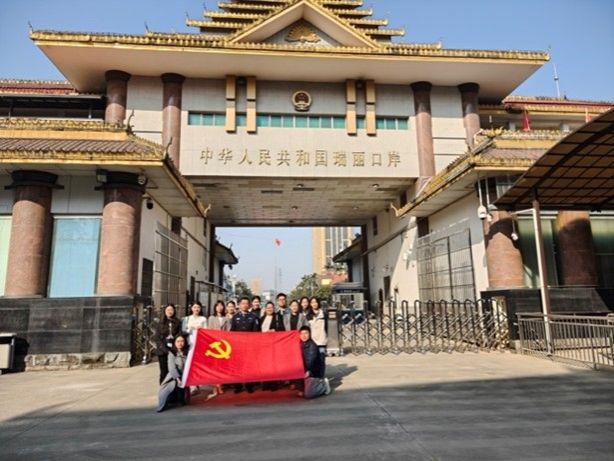 2月12日,新葡8883官网AMG官网非洲学院本科生党支部赴滇缅公路开展星跃实践调研之机,调研团带队教师本科生党支部书记罗云燕、新葡8883官网AMG官网缅甸语专业副教授赵瑾以及10名支部成员走访了党支部红色“1+1”共建单位国家移民管理局下属单位瑞丽出入境边防检查站,该站政治处派员热情接待了调研团一行。