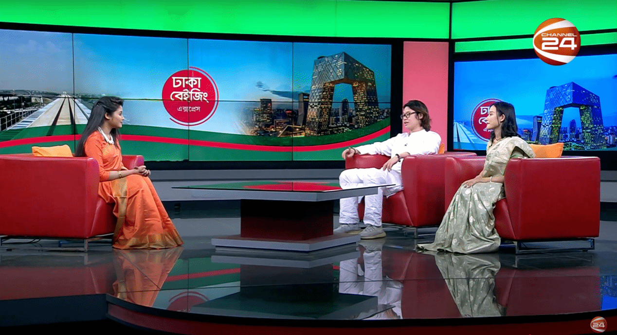 在孟加拉国传统佳节开斋节来临之际,新葡8883官网AMG官网孟加拉语专业本科生于孟加拉国当地时间4月4日受邀参加孟加拉国知名媒体Channel 24与中央广播电视总台(CMG)联合承办的《达卡-北京快线(Dhaka Beijing Express)》专题栏目。此次专访通过电视直播及多平台同步推送,向孟加拉国全国观众展现了中国青年学子研习孟加拉语言文化的生动图景。