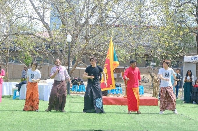 僧伽罗-泰米尔新年在每年的4月,是斯里兰卡的最重要的传统节日之一。斯驻华使馆为此精心准备了庆典活动及午宴,斯在京人士、留学生、中方友好人士以及其他国家驻华使节等一百余人欢聚一堂,共同庆祝这一传统节日。庆典伴随着斯里兰卡独具特色的 “煮椰奶”仪式开启,斯里兰卡驻华大使贾升和首先致辞,对来宾致以诚挚的节日问候。随后,使馆工作人员及家属、在京斯里兰卡人士纷纷上台表演了歌曲、舞蹈等节目。2023级僧伽罗语班同学和北外斯里兰卡留学生们一起身着斯里兰卡传统服饰,表演了斯里兰卡歌舞串烧,受到大使、使馆工作人员以及所有嘉宾的欢迎和赞扬。