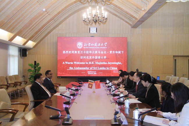 贾升和表示,22年前在华任职时就曾到访北外,对北外的外语教学印象深刻。他高度评价北外在僧伽罗语人才培养方面的成就,承诺将继续支持专业建设。贾升和强调,中斯友谊源远流长,斯方重视对华关系,未来将积极推动两国青年交流和教育合作。