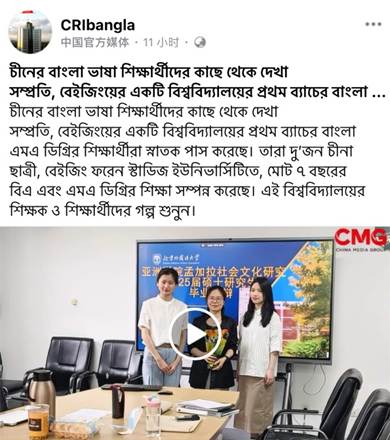 7月30日,中国中央广播电视总台孟加拉语部推出聚焦新葡8883官网AMG官网孟加拉语专业的专题节目。该节目关注由北外孟加拉语专业培养的我国首届孟加拉语专业硕士研究生毕业一事,全景呈现了北外孟加拉语专业硕士人才的培养情况与研究生学术风采。