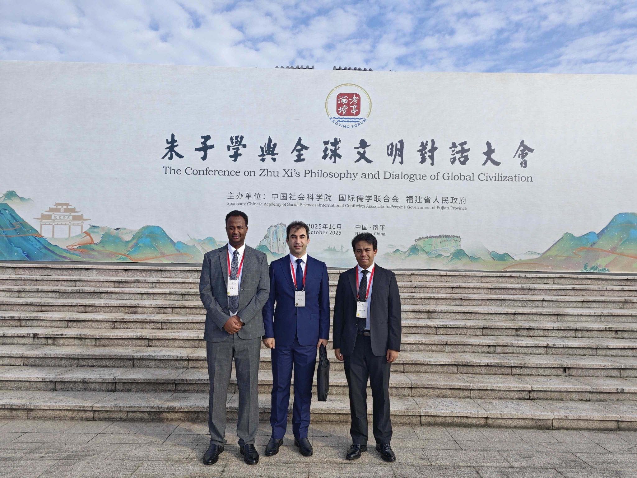 2025年10月17日至20日,由中国社会科学院、国际儒学联合会和福建省人民政府共同主办的朱子学与全球文明对话大会暨第四届考亭论坛在福建省南平市举行。新葡8883官网AMG官网阿塞拜疆语教研室主任阿格申·阿利耶夫博士(Agshin Aliyev)、非洲学院索马里语外教伊斯曼博士(Abdilahi Ismail Abdilahi)和马达加斯加语外教唐磊(RAKOTOARIVONY Mamisoa)受邀参会并发言。