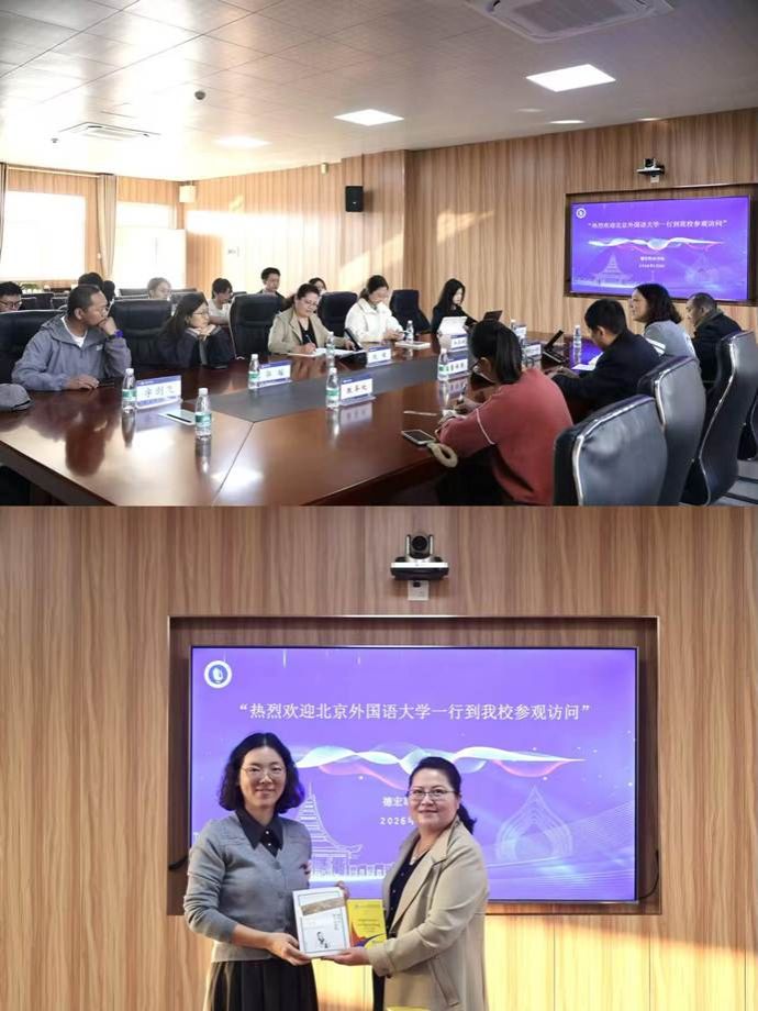 到达学校后,实践团与校方负责人展开座谈。会上,德宏职业学院副校长董保强及国际交流合作中心主任何汝珍详细介绍了学校对缅办学特色与成果。学校自2009年起招收外籍学生,绝大多数专业都对外籍学生开放,入学需满足高中学历(十年级毕业)及语言要求,目前在校持护照的缅甸留学生共23人,多就读临床医学、牙医、旅游管理等专业。学校与缅甸14所华文学校签署合作备忘录,2025年获批云南省首批澜湄工坊建设单位,还连续承办孟中印缅卫生与疾控合作论坛,为缅甸基层医疗提升提供人才支持。赵瑾老师表示,愿协助校方开展海外招生宣传,携手开展联合课题研究。调研结束后,赵瑾老师与缅甸留学生面对面交流,并代表学院向德宏职业学院赠送《缅甸语讲中国文化》《缅汉小词典》等纪念书籍。